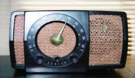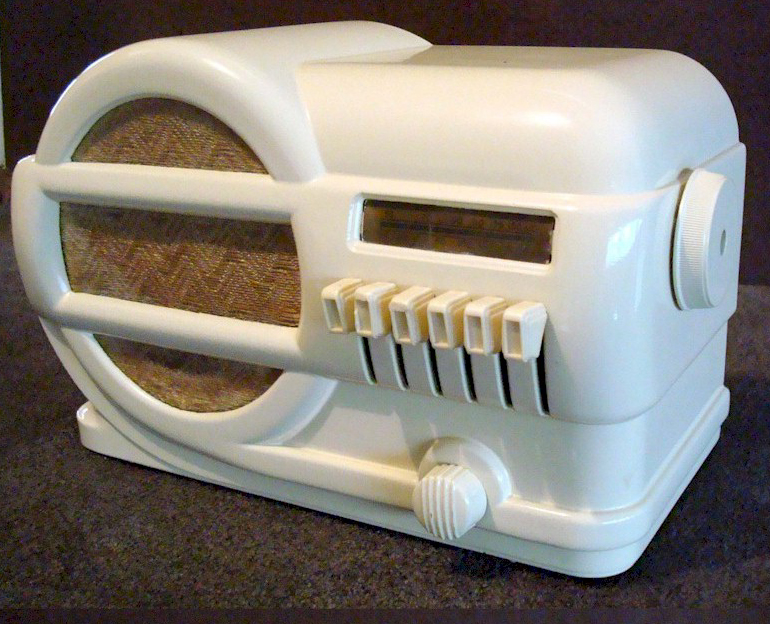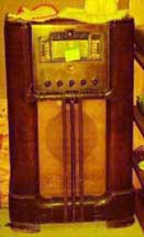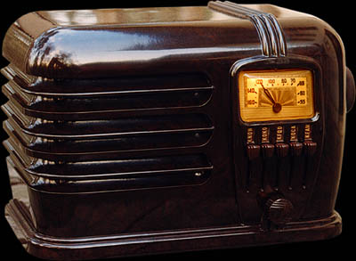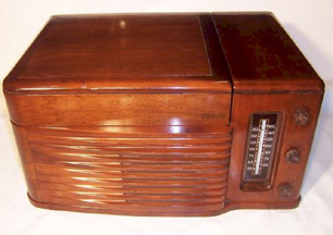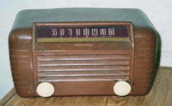 Posted July 3, 2002 Crosley "11-107-U" Radio This is another artifact from Carl Kirtley's Treasure House. This is also known as "The Decorator", because it was only available through interior decorators. It has a lot of style, but it is not at all different in performance or circuitry from other Crosley plastic radios of the early 1950s. This one was probably made in 1952. From what we can see on e-bay, the Black Version seems to fetch more money. Here is another Collector's Model 11-107U And, here is the Brown Version. More about this will be posted soon Crosley Model 547 "Fiver Quicktune" We got this photo from our friend John who writes: "... This is a 1937 Crosley Model 547, known as a Teletune or a Quicktune Fiver... It is restored and the AM/SW work just fine ..." ![]() Crosley Model 547 Radio "The Fiver Quicktune" Click to Enlarge John has quite a rare version. The "Fiver" means that the radio has five tubes. The "Quicktune" option worked like a telephnone dial, and option that was offered by both Sears and Philco. At the depth of the depression, people who had money would probably want to spend it on a console (with a big speaker) rather than on a souped up table radion. My guess is that the "Fiver Quicktune" didn't sell a lot of copies leading to its relative rarity. Here is a vide showing the insides of the "Fiver" without the "teletune" option. Here is a nice photo of the outside. Click here to look at another type of collectible, or keep on scrolling for more Radios. | |||||||