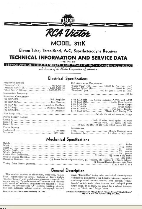 The 811K is a magnificent console radio that was the top-of-the-line in 1937. It employed a whole lot of "magic" for its day: