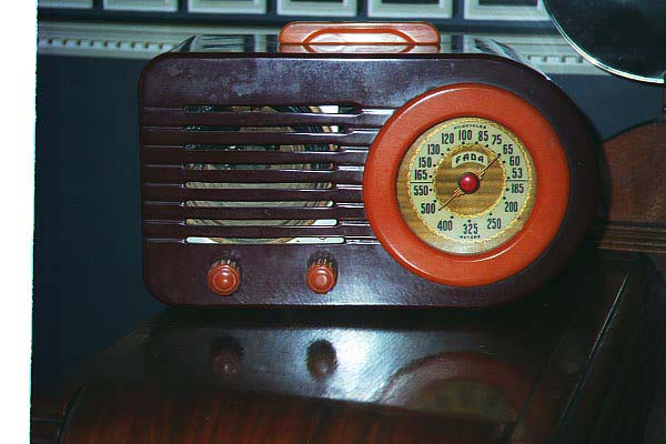 Click here to view a 1946 Fada Radio Advertisement I found this in a junk store in Denver in 1979 and paid about $3 for it. The burgundy and butterscotch color scheme is my favorite of the lot, although they came in a wide variety of colors. White and Butterscotch is also a desirable color scheme. It still works. Here are more of these gorgeous babies: