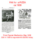 The Silvertone Model 4687 Console Radio $59.95 in 1938 is equivalent to $1,860 in 2009 Click to Enlarge Comparing the 4766 and 4687, it appears that the value of the bigger speaker and larger cabinet was about $9.50 in 1938 (about $130 in 2009 dollars). Click here to look at another type of collectible. Facsimile Transmission Circa 1939 The Crosley Radio Printer From the May, 1939 issue of Popular Mechanics $50 in 1938 is equivalent to $2,000 in 2011 Click to Enlarge