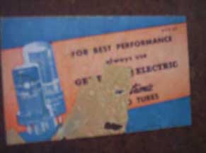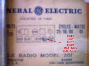 ![]() ![]() Technical details of the GE Model 201 (left) Tube Lineup for the GE Model 201 (right) Back of the GE Model 201 (bottom) "Use only GE Tubes" Click here to look at another type of collectible, or keep on scrolling for more Radios. | |||||||