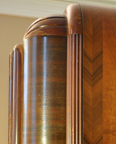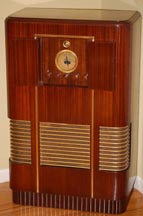 In the July 4, 1938 issue of LIFE Magazine, RCA ran an unprecedented 8 page spread on the models that would be offered for 1939. In the upper right hand corner, you'll see the dial and controls of the 811K: ![]() The RCA Brochure Click Photo to Enlarge It All of these features did not come cheap. The thing cost $692 in 1937, roughly the equivalent of a new Ford car. It was BIG -- it stands 43 inches high, is 29 inches wide and 15 inches deep. It weighs nearly 80 pounds. The cabinet is meticulously crafted, featuring four woods and six veneer styles. For more technical details, Check out this source. As I said, I spent nearly 4 years (off-and-on) restoring it. Here are some of the photos: