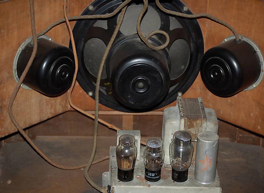 ![]() The Innovative Sound System Left: Basic Radio Tuner, Right: Frequency filter and Speaker System Click to Enlarge The set could receive an astounding number of broadcast signals including Long Wave (Domestic), Three Short Wave (International and Police) and (amazingly) the Armstrong FM band. This places it at the top of its class for technological development in 1935. Click here to look at another type of collectible, or keep on scrolling for more Radios. | |||||||