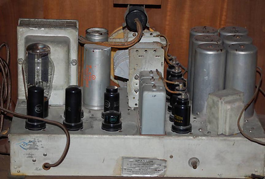 The Sparton "Nocturn" and the Model 1476 Click to Enlarge The 1476 is a console radio and uses a 12 tube superheterodyne circuit. An additional 4 tube frequency splitter and power amplifier drives three speakers, a large electrodynamic midrange speaker and two tweeters. In addition, the VG-1 tube was used as a tuning indicator. All of this was extremely High Tech for 1935 and many years in advance of similar innovations by other companies.