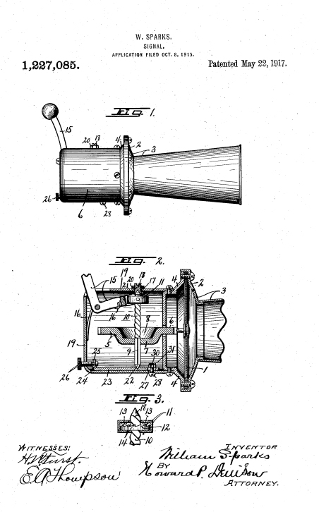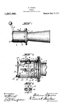 Other Sparks-Withington Products Horn Patent No. 1,227,085,Radiator Fan Patent No. 1,256,941 Click to Enlarge Click here if you want to learn how to get Patent Drawings Prior to involvement with radios, the company manufactured automobile accessories (particularly horns and radiator fans). Radio production was added to the company in 1925 under license from Roy Weagant, who formerly designed DeForest TRF sets. Sparton was one of the first to use Kellogg AC tubes. In the late 1920s, Sparton at first refused to license RCA's patents, which led Sparton into the business of making its own tubes under the Cardon brand to guarantee its supply. Sparton's Equasonne models in 1928 were another measure to avoid RCA's patents - these models used a special circuit licensed from Technidyne Corp. In 1929, Sparton finally negotiated a license with RCA - after showing that it had the capability and will to do without RCA if necessary. Once licensed by RCA, Sparton ceased making its own general tubes. In 1934-35 Sparton made the VG-1 tube also called VisoGlo, a glow discharge tube used as a tuning indicator well before RCA introduced the Magic Eye as discussed below Sparton was not particularly successful in the radio business after 1930, but continued to produce radios and TVs until 1958, when some of its assets were sold to Magnavox. The name of the company changed from Sparks-Withington to Sparton Corp. in 1956, and it continues as a successful company today, making a variety of products in aerospace, defense, medical, and other product lines. The most famous of the Sparton radios is the "Nocturne", immediately recognized by it's mirror casing. It has been widely reproduced at about 3/5 size, and generally the reproduction lacks the grace of the original, especially when plastic is used. The Model 1476 was extremely "cutting edge" for its time.