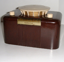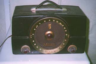 Posted November 15, 2001 This is a small bakelite table radio, RCA model 65X2. The original color is white, and someone has (badly) applied a dark spray, possibly to make it look more like Bakelite. This case will require a lot of patient effort working with vaseline and steel wool to remove the junky paint. Watch this space in about a year to see the finished product... This radio is distinguished for two reasons:
