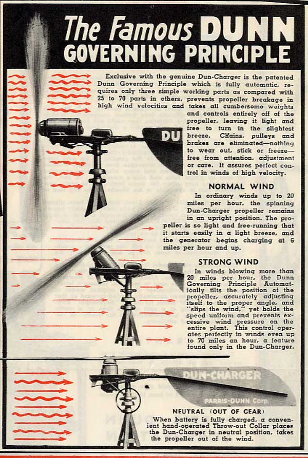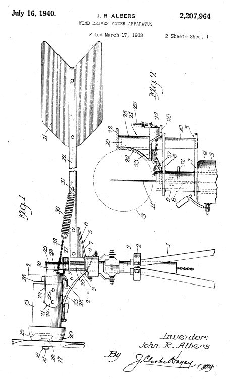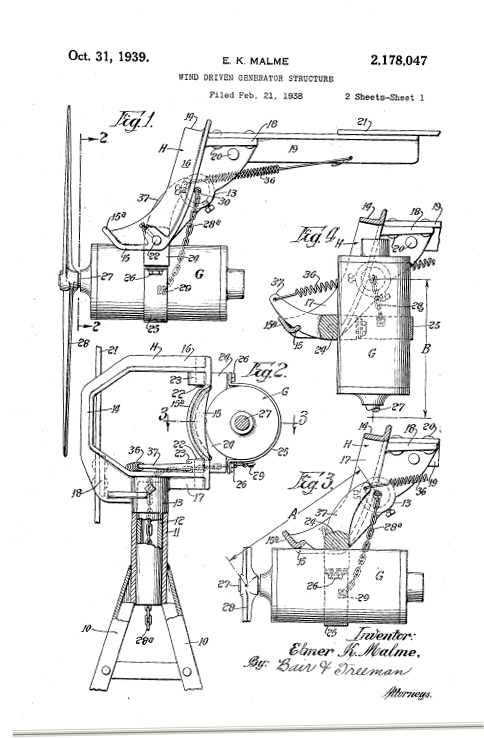 There are Literally Hundreds of Wind Turbine Patents dating back to 1850 Wincharger Governor Patent No. 2,207,964 Parmak Governor Patent No. 2,074,952 Parris-Dunn Patent No. 2,178,047 Click to Enlarge