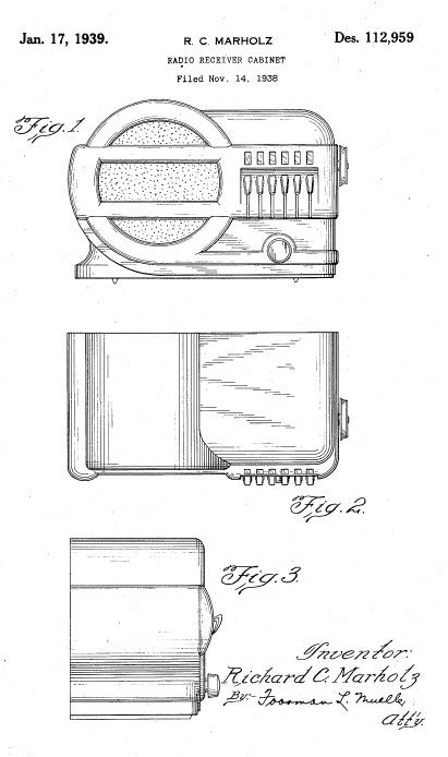 Posted June 3, 2009 1939 Belmont 519 Radio Here is another little Belmont Table Radio that has a whole lot of style. This radio was designed by Richard Marholz for the Belmont Company. In January of 1939, he received Design Patent D-112,959, as shown below