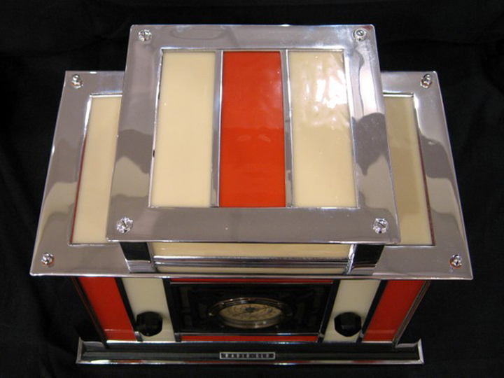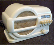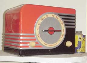 Posted November 5, 2002 General Electric Model F-40 Radio This vary rare radio was restored by one of our readers, the remarkable 40s Phil in Indiana. Phil writes: "The radio is a G.E. F 40. It was originally just brown bakelite - I couldn't resist adding the Deco paint job. Click Here for a schematic for the radio." Click Here to see what the F-40 looked like before Phil applied his custom paint job. I agree with Phil when he says that if GE used this color scheme, they would have sold ten times as many of these radios! Click here to look at another type of collectible, or keep on scrolling for more Radios. | |||||||