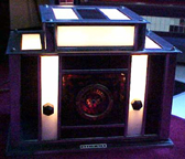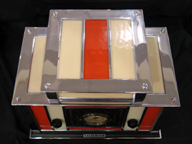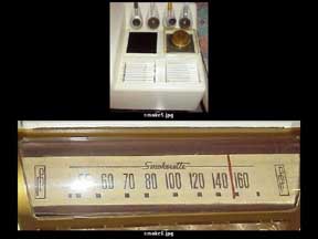 Posted November 5, 2002 The Smokerette Ash Tray and Radio Smokerette (Model SR-600) by Porto Products of Chicago, Illinois. It uses a Stewart Warner radio chassis, circa 1947. It receives AM broadcasts,only and was designed by Barnes and Reinecke. Click Here to see a Smokerette in Brown. The radio has racks for up to four pipes and compartments to store tobacco, and an ash tray. This set was restored by one of our readers, the remarkable 40s Phil in Indiana. Phil writes: "I noticed that your radio page had a combo bar/radio on it. Here's a combination of a smoke stand/radio/ashtray that you might like." Click here to look at another type of collectible, or keep on scrolling for more Radios. | |||||||