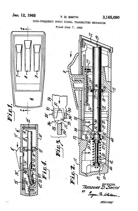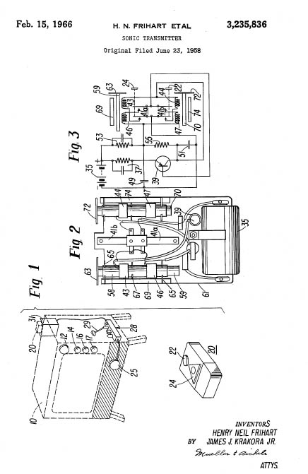 ![]() Patent Diagrams for the Zenith Space Command Remote (No.3,165,090 and No.3,235,386) Click to enlarge either photo Click here if you want to learn how to get Patent Drawings Probably less than 1,000 of the Philco 39-116 sets were produced and they are museum-class rarities. Click here to look at another type of collectible, or keep on scrolling for more Radios. | |||||||