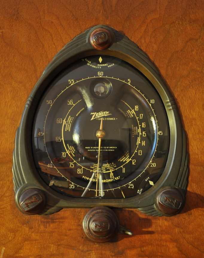 User manual Explanation of the Dial and Tone Control Click to Enlarge As you can see, this is a very complicated mechanism that must have added considerably to the cost of the radio. Although it is a fascinating device, its limited use probably meant that its appeal did not outweigh its cost. Low-cost radios eventually eliminated the short wave bands altogether. However, during the dark days of World War II, many people gathered around their Zenith to hear Edward R. Murrow give the blow-by-blow details of the Blitz. Click here to look at another type of collectible, or keep on scrolling for more Radios. | |||||||