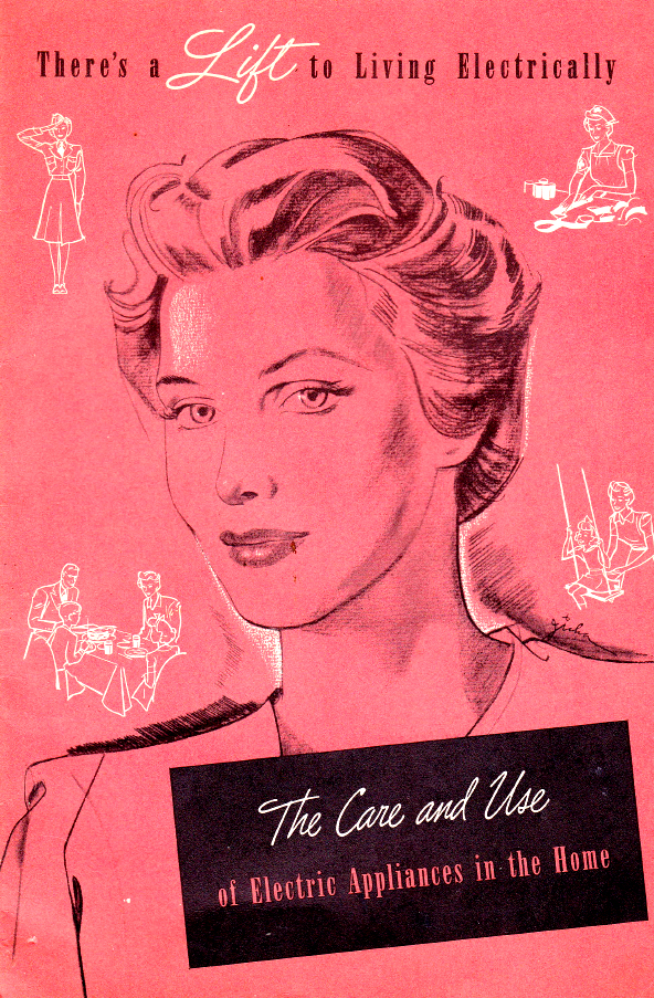 In addition to the Roaster manuals, Roberta (THANK YOU!) has privided a rather lengthy WWII Era book on the care and use of electrical appliances that is (of course) a thinly veiled advertisement for other Westinghouse products. Note that on the cover, the stylish young lady is portrayed as a homemaker, volunteer, worker (in a defense plant) and Mother. The Care and Use of Electrical Appliances in the Home "There's a LIFT to Living Electrically" See below for download instructions THANK YOU, ROBERTA! Click to Enlarge We have divide this rather lengthy brochure into four 8MB segments for easy download:
