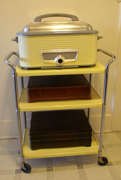 Cynthia's Yellow Model RO-541Y Roaster (click to enlarge) Our reader John (with the great rotisserie shown above) sent us these photos of his 1950s Roaster in Aqua. (In "mint" condition). He writes: "... I thought you might enjoy pictures of this stunning example of the Roaster in one of the 'designer' colors. Thanks for publishing the previous rotisserie photos I’ve sent in ..."