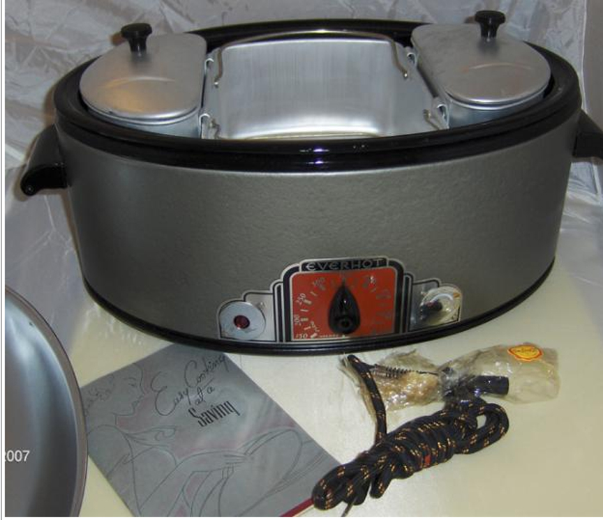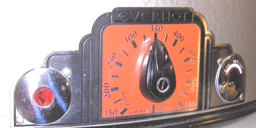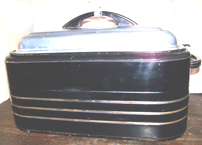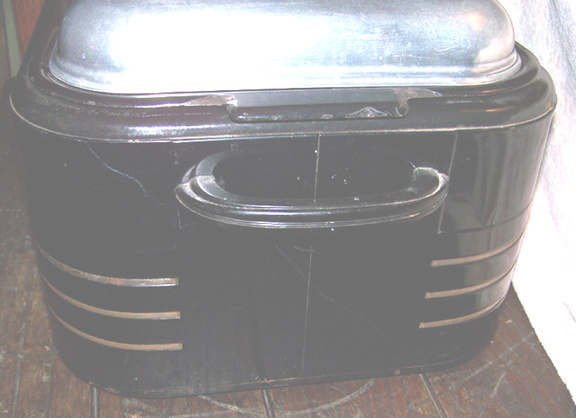 Please feel free to send us scans of any Roaster Manuals or brochures that you may have. ![]() The General Electric Oven Roaster Westinghouse wasn't the only company making roasters. Here's the cover of the instruction manual for the General Electric version. We are indebted to our reader Andrea for sending us these lovely oictures of an EverHot Roaster made by the Swartzbaugh Manufacturing Company of Toledo, Ohio. Andrea has this to say about her EverHot Roaser: "... I think my Everhot roaster may be older than the oldest one on the Westinghouse Roaster page.It has the distinctive 'Art Deco' styling. It is a series A/B - the A has been overstruck with a B. It was received as a wedding present in August 1937 and was never used. The interior is pristine. I have the original box which is a bit fragile.And I have the original instruction and recipe book. ..."