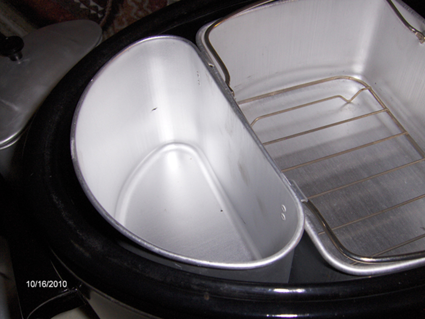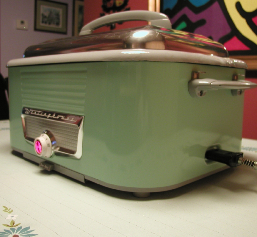A Rarer 1940s Roaster Click to Enlarge Here are my observations: This is a 1940 RO-29.You are lucky to have the timer!! We received this note from our reader Andi, out in Montana. She writes: "... Howdy! I am so excited to show off my fabulous roaster/stand....this was purchased today for $15 at a local yard sale, and it I think it will be one of my favorite treasures yet. I can't believe the shape it's in...virtually no wear at all. The man who sold it to me said he remembers every year of his childhood waking up to a turkey on baking in it on Christmas morning. It is in working order and I can't wait to try it out. ..."