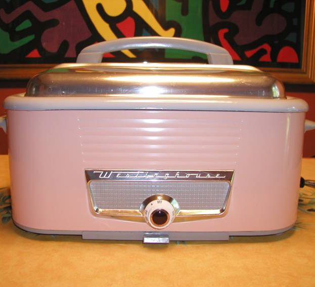 Hoppers!!! Our most popular Collectibles item ![]() Join Us on Facebook This page is part of a website devoted to swing dancing and retro culture from the 1930s through the 1950s. You may be asking yourself, "Why do they have a special page about Westinghouse Roasters?" The answer is purely statistical --- we get more mail about the Roasters than any other collectible. Further, we keep finding pictures of the Roasters and their associated support devices -- they were beginning to swamp their former category, Kitchen Appliances. So, to aid you with your special requests, here are some navigational tools