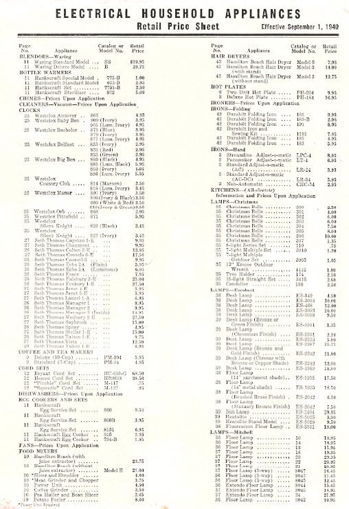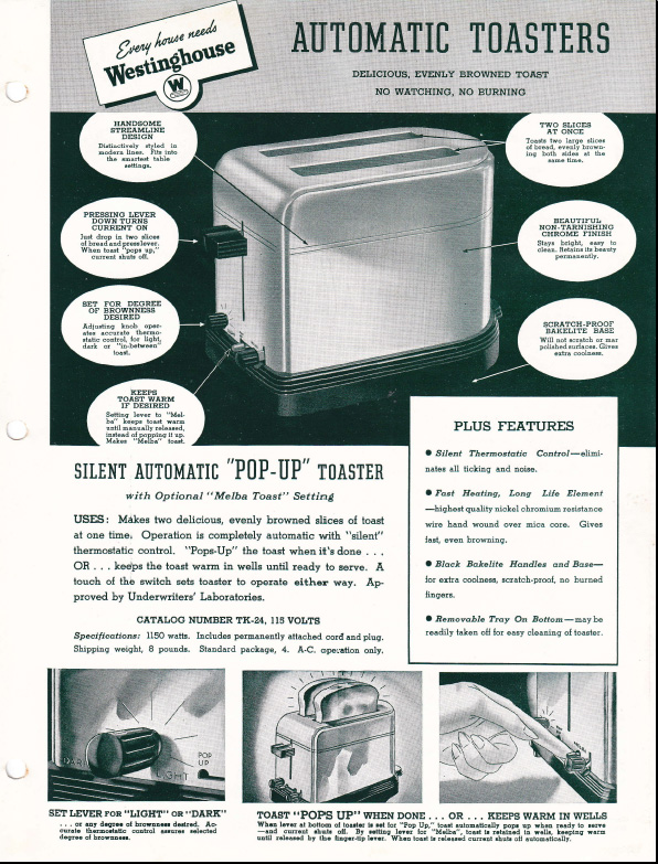 The Westinghouse Appliance Brochure ...and Price List! Click to Enlarge Roberta was kind enough to scan the appliance brochure that came with the roaster and we now make it available for free download. You will LOVE the Price List!
