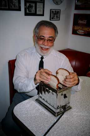 This page is devoted to Toast and the marvelous machines that create this delicacy. However, before we begin our celebration, we must give credit to that which makes even, honey brown toast possible --- the BREAD SLICER. The cliche "the best thing since white bread" is used to describe many things that are in themselves superlatives. So, behold the humble commercial bread slicer: