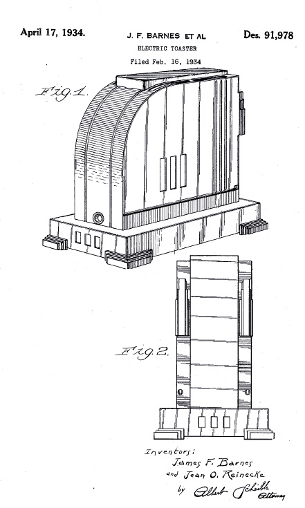 The Design Team of Barnes and Reinecke Handy Hot Toaster Design Patent D-91,978 Click to Enlarge Click here if you want to learn how to get Free Patent Drawings Reinecke and Barnes had a long and successful career and brought numerous products to market, including the iconic Scotch Tape dispenser and the infamous Foot X-Ray machine.