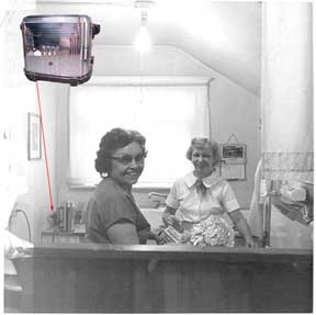 ![]() Toastmaster Model 1A3, One-Slice Model Here are two photos from a World War II era training pamphlet that show you how to empty crumbs from a toaster. The subject was "How to Use Electrical Appliances." Many rural households were just getting electricity due to the Rural Electrification Administration (REA) and the pamphlet was intended to get folks up to speed with the rest of the country. This photo shows the Government-approved method of removing crumbs from a Model 1B3.