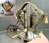 The GE Model D-12 "Wire Fence" Toaster Frank Shailor's Wire Fence Toaster, Patent No. 950,058 Note the cord for a light socket Click to Enlarge Click here if you want to learn how to get Free Patent Drawings Of note in the middle photo is the cord -- you'll note that it is designed for use in a light socket. At the time this toaster was made, most houses were only wired for lighting. (In some places, electricity was only generated at night.) Thus, many folks did not have wall outlets. It is for that reason, the cords were detachable -- you could use one with a screw-in connection if you only had a light fixture hanging from the ceiling. If you had wall outlets, you could use one with a more standard plug. Here is an extreme example of the use of "lighting plugs". A multiplicity of light-cord connections... Click to Enlarge Threats to safety were NOT limited to the consumer. Here is a photograph of ladies assembling the D-12. You'll note that in the background to the right is a fan with no blade guard. This is a GE "Pancake" Fan named for its outsized motor. However, a look at the back of the fan shows that it was "hot wired". Thus, employees stood to lose fingers or be electrocuted. Annoying as it is, there is a definite need for OSHA.