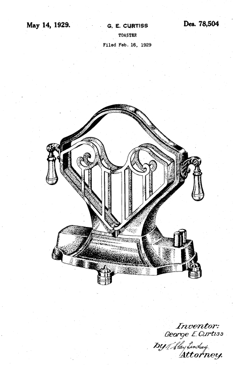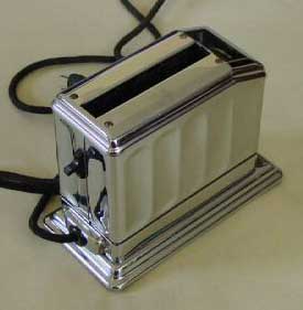 The Landers, Frary and Clark Model E-9410 Sweetheart Toaster Curtiss "Sweetheart" Toaster Design Patent D-78,504 Click to Enlarge Click here if you want to learn how to get Free Patent Drawings The Chicago Electric "Handy Hot"Here is a toaster (c. 1936) that uses Art Deco architectural styling. It was made by the Chicago Electric Company and is known as the "Handy Hot" (Model AEUB).