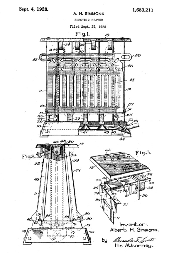 Jean Otis Reinecke Scotch Tape Dispenser Patent No. D-116,599 The Infamous Foot X-Ray Machine, Patent D-149,088 Click to Enlarge Click here if you want to learn how to get Patent Drawings The GE Model D-12, "Wire Fence"This is a very early manual toaster that seems to defy safety. Basically, it is a "Fence" of resistance wire with no covering. The user placed the bred inside the fence and watched it very carefully. I do not know how the toast was extracted from the heat, possibly with wooden tweezers. The only nod to convenience is a tilted rack that was used to store toast. There is no "power" switch. Electrocutions and third degree burns must have been frequent. This type of thing was placed on the market before there was effective consumer protection. In general, I have no use for the "nanny state" but this is ridiculous!! The wire fence toaster was patented by Frank Shailor in 1910 as an "electric heater".