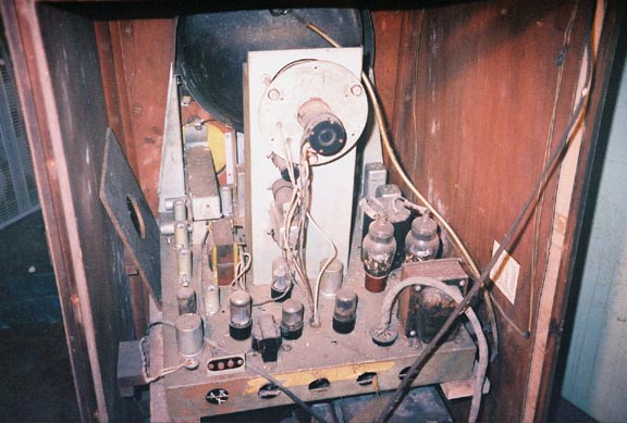 Posted July 31, 2002 1947 DuMont Teleset This is the DuMont Clifton RA-102 (serial number 6230) made in 1947, a VERY early Teleset, as these things were known in the 1940s. It is entirely handmade, the case is solid mahogany, and weighs a ton. This is an extremely significant piece. Why is this so important? The reason follows, but befor you read on, place in your mind the epic battle between VHS and Betamax, or more lately, the battle between Netscape and Internet Explorer. Every technological revolution produces a struggle for market domination. As you read on, bring to mind your images of Apple vs Microsoft In the 1930s and 1940s, Allen DuMont was at the forefront of TV technology and programming. DuMont Laboratories perfected the first practical cathode ray tubes (CRTs) and the first all-electronic TV receivers. In the 1930s DuMont, an electrical engineer and vice president of a New Jersey radio-parts firm, began working in his garage on an inexpensive, long-lasting CRT. In 1939, people were crowding around DuMont television sets to watch President Franklin Roosevelt open the World's Fair. One of DuMont's early inventions was the "tuning eye", which he sold to RCA for $20,000 (for some background on this device, click here). DuMont developed the first long-lasting cathode ray tube, the basis of electronic television, and was first to offer a home television receiver to the public in 1939. DuMont also applied for an experimental television station in New York City, which went on the air as W2XWV in 1942. Two years later, the station was licensed commercially as WABD, channel 5 (for Allen B. DuMont). DuMont also owned WTTG in Washington, D.C. (originally W3XWT), also on channel 5, which received its commercial TV license in 1945.