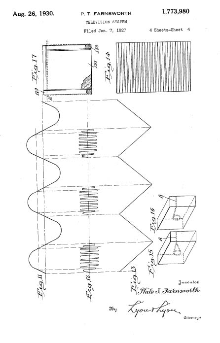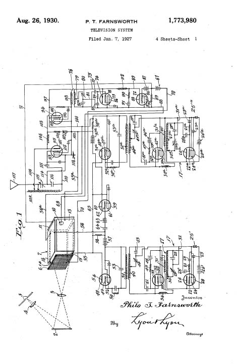 ![]() Farnsworth Televison Patent No. 1,773,980 Click to Enlarge The Tube Lineup is:
