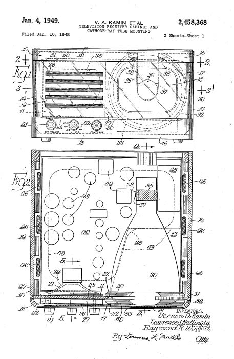 ![]() Advertising and Patent for the VT-71B ..V. A. Kamin Patent No.2,458,368 Click to Enlarge Click here to look at another type of collectible, or keep on scrolling for more Televisions. | |||||||