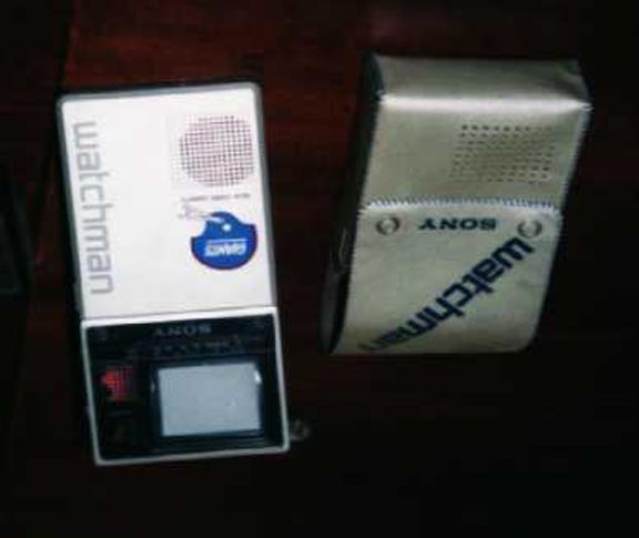 Posted January 10, 2002 This isn't from the Swing Era, but it is one of the very first generation of SONY Watchman portable micro-televisions. I bought this when they were first announced and I was thoroughly annoyed that the only model they had came with a "New York Giants" emblem (I had wanted one for the Steelers...) They were initially sold to sports fans who carried them to football games to catch the instant replay. I also have the aftermarket lens magnifier that made the small picture somewhat more viewable. Click here to look at another type of collectible, or keep on scrolling for more Televisions. | |||||||