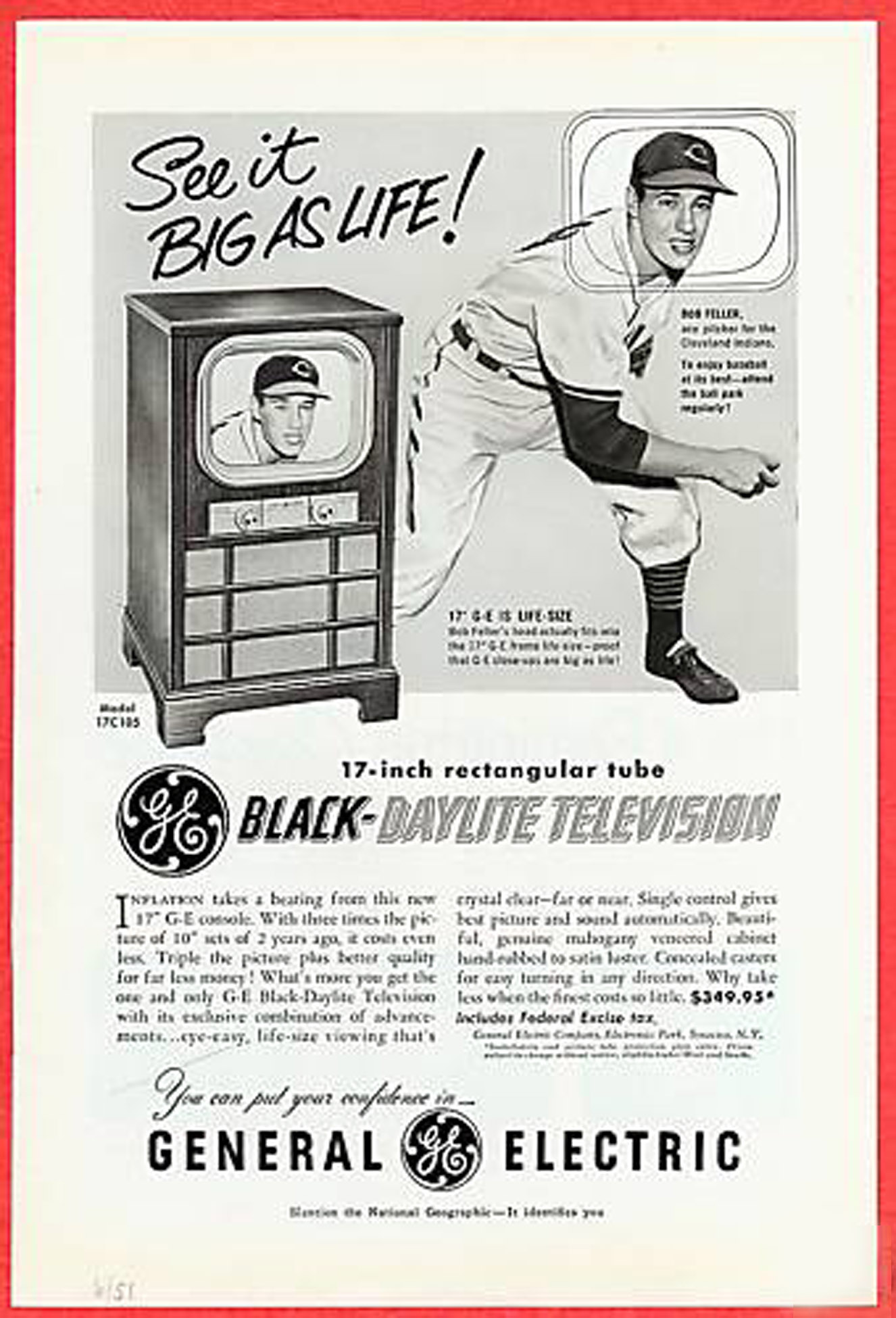 Sports Were a Big Component of Early TV (left) Ad from LIFE Magazine October 6, 1941 (just before Pearl Harbor) Most Folks Would Have to Wait 8-10 Years to Experience This (Right)Ad From LIFE Magazine, September 18, 1941 Bob Feller pitched 3 "No-Hitters" during his career with Cleveland Click to Enlarge