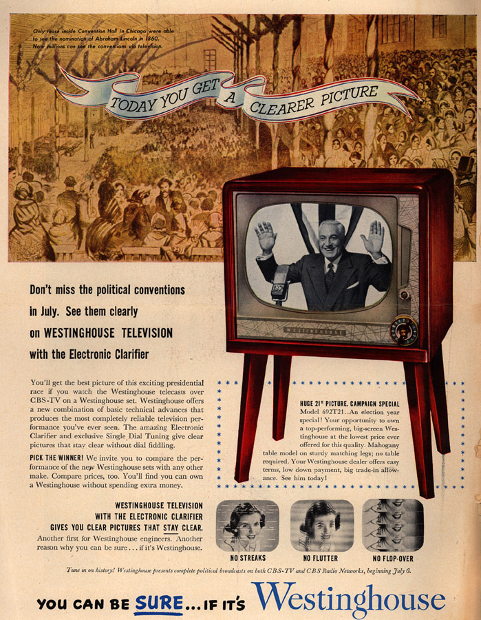 Networks and Networking (left) Early 2-Station Networks (1944 - 1945) Westinghouse owned stations and made TV sets -- and sponsored the 1952 Conventions ABC promoted its schedules in 1950 to convince listeners that it was really a major network Click to Enlarge