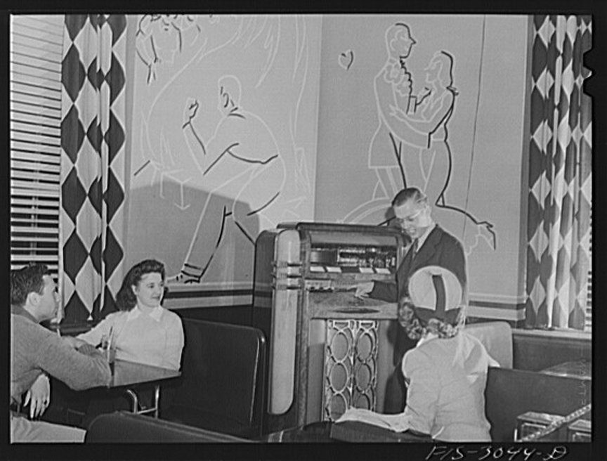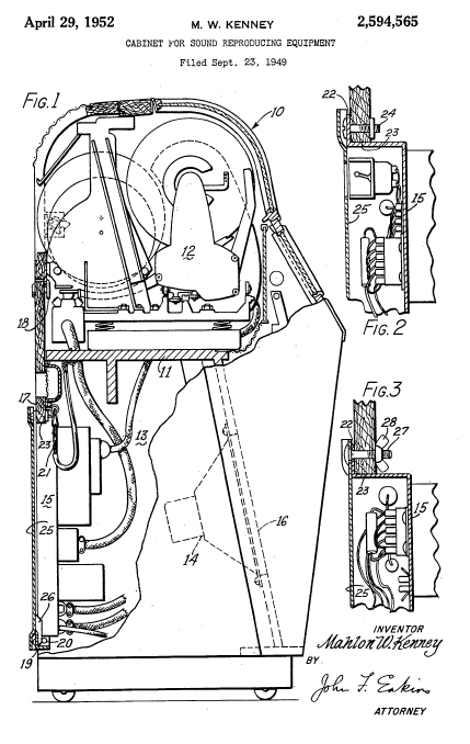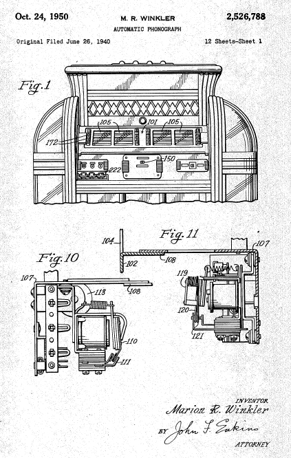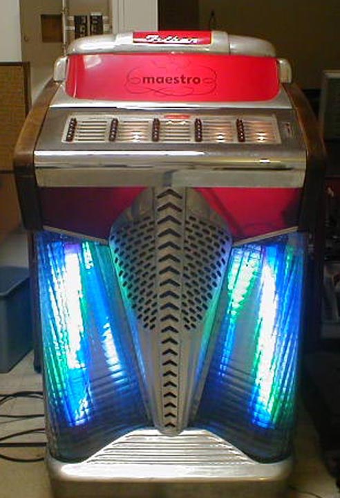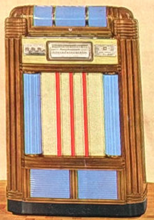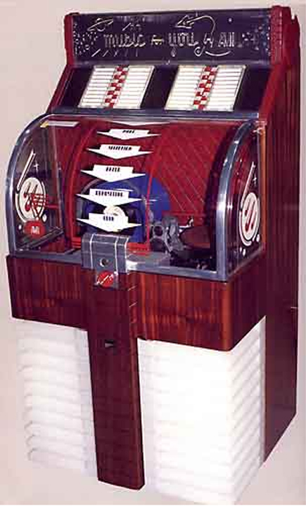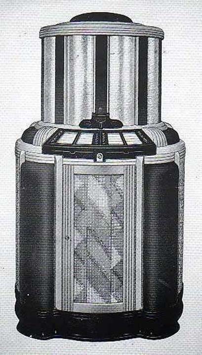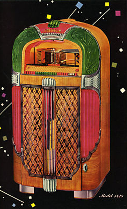 Design Patent D-149,589 Note that the people in the ad are wearing tuxedoes and dancing to a jukebox... Click here if you want to learn how to get Patent Drawings Here is a video of a Rock-Ola model 1428 jukebox playing Begin the Beguine, by the Artie Shaw Orchestra. The Filben "Maestro"The Batavia Metal Products Company made less than 900 of these and was forced out of business in the mid 1940s because they could not get materials. One suspects that the other manufacturers colluded in this process.