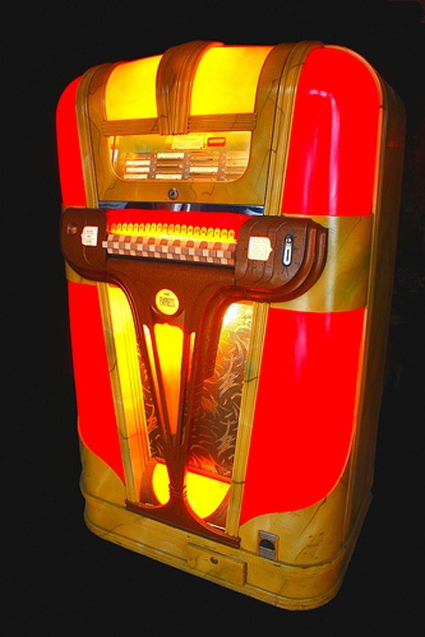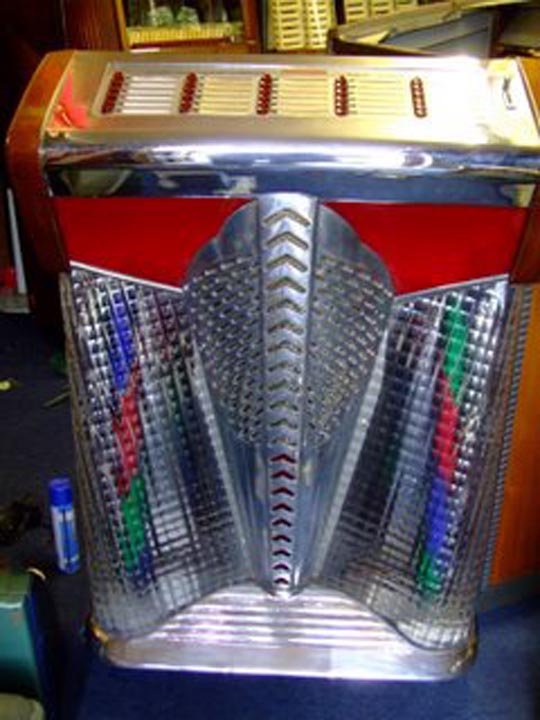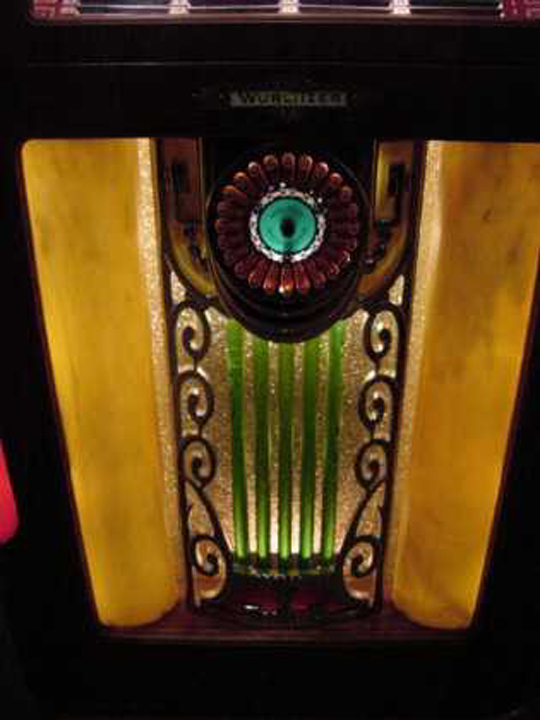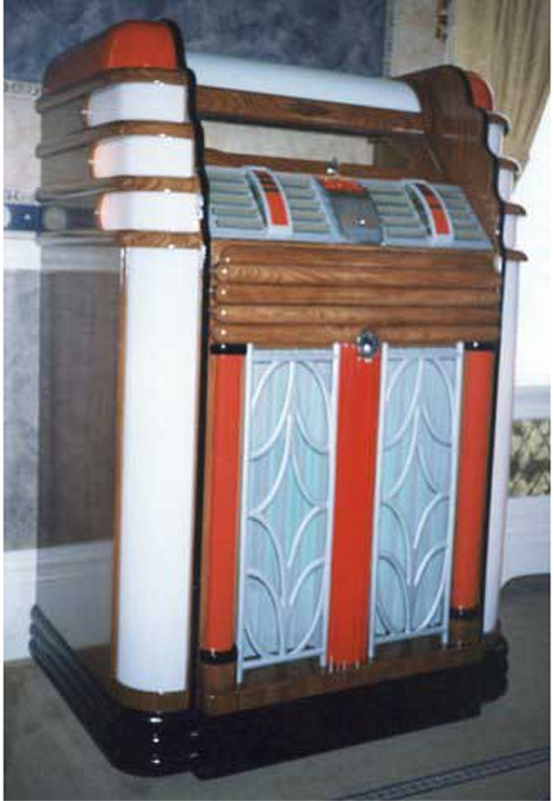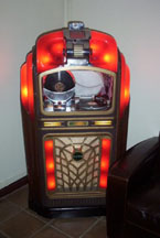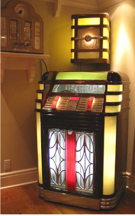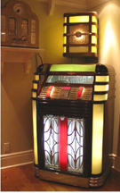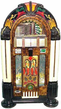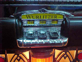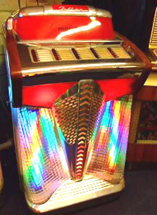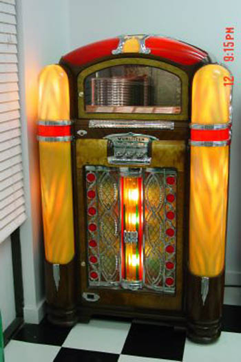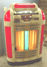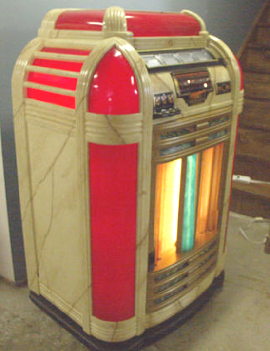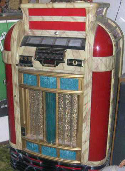 The Wurlitzer Model 950 Jukebox Gazelle, Pipes Of Pan, Flutes of Pan Click to Enlarge Many of the internal components, including the coin chutes, coin box and tone arm post are made of wood since metal was in short supply during the War. This is the rarest of all the Wurlitzer "Golden Age" jukeboxes, and some say the most beautiful. The Wurlitzer Model 1015Shortly after WWII (when wartime restrictions on building materials were removed), the Wurlitzer Company introduced the Model 1015 Jukebox with great success, saving the company from near-bankruptcy brought on by the Depression. The 1015 pushed Wurlitzer forward as the leader of jukebox manufacturing, with 56,000 units being sold in less than 2 years. This was the Golden Age of jukebox production. The 1015 wasn't just a huge hit in the United States, but also appeared anywhere Americans went, following GIs all over the globe. Also called the "1015-Bubbler", this juke is arguably the most popular jukebox of all time. It was also designed by Paul Fuller. With its illuminated, color-changing pilasters, 8 bubble tubes, shiny chrome and domed top, it is reflective of the positive, uplifted attitude of the post-war nation. The coin-operated 1015 plays 78-RPM records and has push-button Multi-Selector technology.