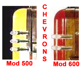 Wurlitzer Model 500 Design Patent D-112,521 Click here if you want to learn how to get Patent Drawings The Model 500 was accepted at high end establishments. The 1938-1939 brochure states that: "...[the] hardest nut for the music merchant to crack has proved to be the white tie and tails location... Few phonographs found welcome in this ultra-ultra atmosphere until the advent of the Wurlitzer Deluxe 500..." Wurlitzer Model 500 in a USO Club Circa 1944 Click to Enlarge Click here if you want to learn how to get Patent Drawings The Wurlitzer Model 600The Model 600 was a down-sized version of the Model 500. (The 600 has two "chevrons" on its sleeves while the Model 500 has three) A nice example of this machine can be seen in the opening scene of the film The Blue Dahlia. Both front and back of the 600 can be seen as William Bendix rips off the cord because he cannot stand the "Monkey Music" being played. ![]() The Model 500 "Outranks" the Model 600 The apparent intent of the Wurlitzer company was to get rid of some older technology. The "600" was offered in two forms: one had the keyboard selector and the other had the old round Simplex Selector. The latter was sold at a considerable discount. For the keyboard models (as shown below), a "gee whiz" feature was inserted to take the place of the dial. This was the now-famous "Green Arrow" -- the center lit up in green and what appeared to be an arrow spun around and around until it pointed to the selection currently playing. This was a well-received novelty -- the company sold nearly 10,000 of them. They must have used up their entire inventory of simplex selectors, because that device never appeared on another Wurlitzer jukebox.