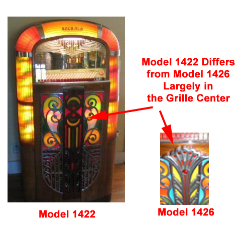 The Insides of the Model 1422 Details of the Fluorescent Lights Here is a video of the Rock-Ola Model 1422 jukebox (owned by a Japanese collector), playing "La Bamba" by Ritchie Valens. The Rock-Ola Model 1426This uses a bit more metal and less wood than the Model 1422. The only differences between this and the 1422 are:
