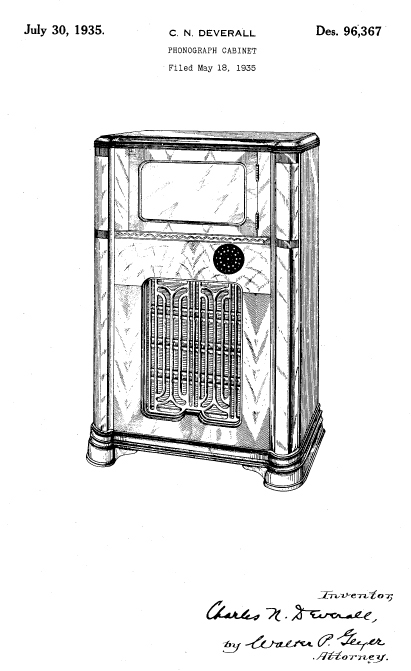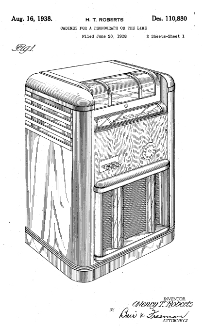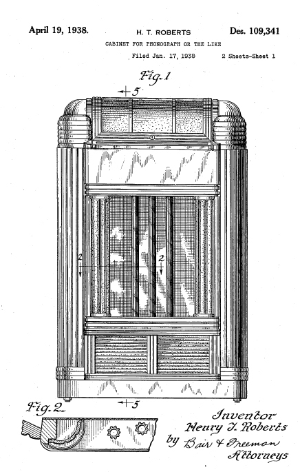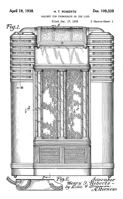 The Seeburg "Crown" Design Patent D-109,339 The Design Patents for the Crown, Regal, and Gem are consecutive Click to Enlarge