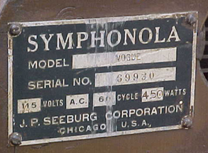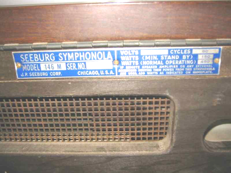 The Seeburg "Colonel" The Seeburg "Colonel" Manufacturer's Plate
