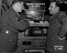 The Omnipresent Jukebox at the USO (left) Model 500 (right) Model 616 Nothing but the best dead stock for our boys... Click to Enlarge Here are two photographs from OWI showing a Wurlitzer Model 750 in a segregated facility, entertaining African-American troops.