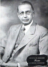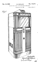 Jean Otis Reinecke Scotch Tape Dispenser Patent No. D-116,599 The Infamous Foot X-Ray Machine, Patent D-149,088 Click to Enlarge Click here if you want to learn how to get Patent Drawings In 1946, the name of the company was officially changed to AMI Inc. and the company introduced the AMI Model A, also called Mother of Plastic, designed by Reinecke. In 1948, the AMI Model B was introduced as a lower cost alternate to the Model A. The next model, the AMI Model C was introduced in 1949. Both models B and C were not design patented. In the 1950s, AMI moved to a new changer system and introduced the Model D tha was capable of playing 45 rpm records. During the 1950s Licensed manufacturing agreements created BAL-AMI (England), IMA-AMI (Denmark) and EDEN-AMI (France). The Automatic Canteen Company bought AMI in 1959, merging it with its subsidiary ROWE AC Services, a manufacturer of coin operated vending machines. Rowe-Ami is still manufacturing jukeboxes today. The Seeburg CorporationThe Seeburg Company was founded in 1887 and eventually came to dominate the jukebox field in the late 1950s. The company attained its position through superior technology. In 1887, at the age of 16, Justus P. Sjoberg left Sweden, bound for the United States. He changed his name to Seeburg soon after arriving in Chicago. After completing an apprenticeship in the Smith and Barnes piano factory, he started his first job at the Markette Piano Company, then moved to the C. S. Smith Piano Factory and eventually became plant superintendent at the Cable Piano Company. At this point, he became involved with renting coin-operated player pianos, which were all the rage. After building up a considerable client base, he formed his own company. The demand for electric piano players was strong and Seeburg eventually occupied sales office and display rooms in the fashionable Republic building in Chicago's loop. (By the way, the "P" in Mr. Seeburg's name stands for "Percival")