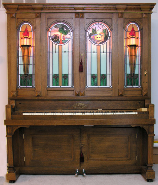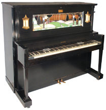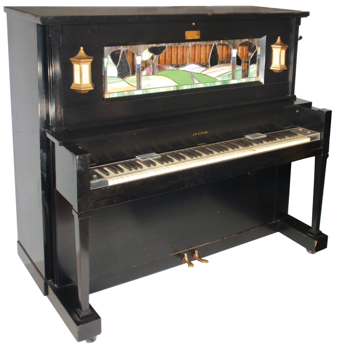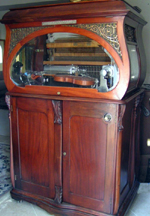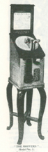 Justus Percival Seeburg Coin Operated Piano and Orchestrion Click to Enlarge Always an innovator, Seeburg supplemented his line of coin-operated electric piano players with the Orchestrion, that used piano roll technology to play piano, violin, mandolin, flute, snare drum, cymbals, triangle and other percussive effects. Here is a video that shows "Charleston" being played on such a machine (dance along if you wish.) In 1926 the availability of electrically recorded records and the development of amplified sound led to a growth in the market for recorded music. The Brunswick 'Panatrope' was the first all-electric home phonograph and it became clear that the home and public markets were moving away from piano players. In 1927 the 'Orchestrion' was discontinued and the Seeburg Company developed their first phonograph. The Melatone jukebox was a complete failure because it had a habit of fracturing the records. I'd like to show you a picture, but all of the machines, approximately a hundred, were recalled and destroyed. Undaunted, Seeburg introduced the "Audiphone", an eight selection jukebox that worked by means of a pneumatic Ferris-wheel. Although it was simple and reliable, the Ferris-wheel mechanism required a very wide machine case was. Although Seeburg often lost out to other companies on the basis of floospace, production of the Audiphone continued into the 1930s.