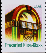 Icons of the 1950s Wurlitzer Model 1015 Jukebox and the Tailfin of the 1959 Cadillac Click to Enlarge Catalog Reference: The Jukebox Stamp is Scott 2911 and the Tailfin Stamp is Scott 2908 The stamp was intended for use by business mailers who presort their mail. The jukebox stamp originally cost 25 cents and the tailfin stamp cost 15 cents. The Wurlitzer name was still synonymous with jukeboxes, although jukeboxes were hard pressed to deal with the times when America basically stopped dancing. Drugstores, Diners and malt shops all but disappeared. In the 1970s, the remnants of the Wurlitzer company were purchased by Gibson. In the 1980s, a renewed interest in the 1950s era led to the resurrection of the Wurlitzer 1015 jukebox. In 1986, in order to celebrate the 40th anniversary of the 1015 Gibson produced an exact replica, calling it the "One More Time". This new jukebox had the design of the classical 1015, but with the latest technology of a modern jukebox. In 1995, the U.S. Post Office issued a new stamp commemorating the 50th Anniversary of the Wurlitzer 1015 jukebox. Replicas of all the famous Wurlitzer jukeboxes of the 1930s are now manufactured in Germany. There is an extensive Wurlitzer Museum in North Tonawanda, New York. for the Wurlitzer Model 1100! Here is the Table of Contents: ![]() Click to Enlarge The Service Manual: