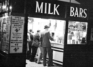 Threats to the British Way Of Life Haut et Bas Socialism and Teddy Boys Click to Enlarge At the pinnacle of society, the British scientific and arts establishment was shot through with Communist sympathizers who had cut their teeth in the Depression and the fight against Fascism. The war, and England's alliance with the Soviet Union provded fertile ground for the translation of "sympathy" to "espionage." Today, one marvels at the degree to which Soviet spies attained high positions within the government and some say (if you read John Le Carre) at the very top of MI-5, the British Intelligence organization. At the other end of the social spectrum, another subversive force proved to be even more damaging to the established order. This was, of course, the British Teenager. Like his American cousin, he spent money on commodities for which his elders saw no lasting value like records, make-up and juke box music. At the time, BBC radio had a monopoly on broadcasting and was quite resistant to musical forms that did not conform to its "founding ideals of public education" This meant rock'n'roll. The BBC seemed excessively concerned over the perceived subversive ideological affects of hot American jazz (while at the time, their colleagues in the Foreign Office were apparently not at all concerned about the subversive influences of the KGB...) Juke boxes gave teenagers raw, unfiltered American music, bypassing the BBC altogether. Juke Boxes played a remarkably similar role in America where they allowed kids to circumvent racist restrictions imposed by commercial radio stations.
