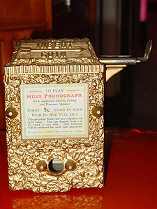 Rockola Jukeboxes of the 1950s (left to right) Rocket, Comet Fireball, Tempo Space and Car Themes Click to Enlarge Rock-Ola's success is best attributed to the drive, intelligence and resillience of David Rockola. His success in a competitive industry was galvanised by the pressure put on him by his rival companies. As a late entrant into the world of jukebox production, Rock-Ola overcame hostility and ruthless competition by a combination of technological know-how and up-to-date design that made the company a success. The Mills Novelty CompanyThe Mills Novelty Company is best known for slot machines, vending devices, and Penny Scales, but they also had some presence in the world of jukeboxes. In this section, we're going to take a brief look at Slots and Vending Machines, because they illustrate the Mills company forte -- coin handling. The business was started by Mortimer Birdsul Mills, who was born in 1845 in Ontario, Canada. Eventually, he emigrated to Chicago and became an American citzen. Mills had 13 children and lived in Oak Park, Illinois, just outside the city. This was a family business and many of his children came to play key roles in the company.