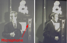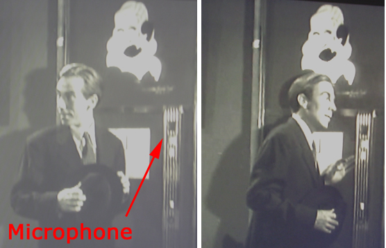 The Seeburg "Colonel" Featured in the Panoram Soundie shown below: This is the Glenn Miller Orchestra doing Juke Box Saturday Night Vocal by the Modernaires Click to Enlarge THE SOUNDIES: The16mm film with sound tracks used in the Panoram were officially called Soundies (one reel with 8 film clips was released per week). The Soundies were made by RCM Productions, an acronym for the names of James Roosevelt, songwriter Sam Coslow, and o Fred L. Mills. (Yes, James Roosevelt was the son of President Franklin D. Roosevelt.) The films were distributed by The Soundies Corporation of America. The Soundies were churned out cheaply and fast but they featured many of the popular entertainers of the time. The machines were popular, but several external events caused trouble. First, James Roosevelt left the firm to serve as the well-decorated leader of a commando battalion in the European Theater. Second, during 1942-1943, the American Federation of Musicians imposed a nationwide ban on new recordings forcing the anxious RCM producers to call upon all their ingenuity to maintain the Soundies production schedule - some 50 titles per month were required. Finally, the Film Projectionist's Union did their best to harass the Panoram. Despite these three impediments, the Soundies are still invaluable film records of musicians, including Duke Ellington, Jimmy Dorsey, Fats Waller, Count Basie, Nat King Cole, the Mills Brothers and others. The rock bottom production values of the Soundies leave much to be desired. The music in Soundies was almost always recorded first and the artists would then mime on camera to playback with varying degrees of professionalism. During World War II, Mills received authorised federal funding to use its industrial facilities to produce bomb carriers, directional antenna, hand control slip rings, and poppet valves. After the war, Mills experienced many financial problems, mainly due to the shortage of materials and the end of the Soundie craze. By 1946 only about 2,000 machines were still on location and problems with the film projectionists' union continued. Today several of the Mills (Model MI-1340) Panoram machines are known among collectors and museums, and they are certainly not as unpopular today as they were among film projectionists in the mid forties. Eckland designed another audio/visual machine in 1945, but for Sono-Vision, a short-lived re-packaging of the Mills assets. It was not coin operated.