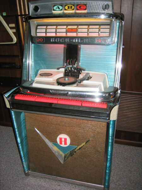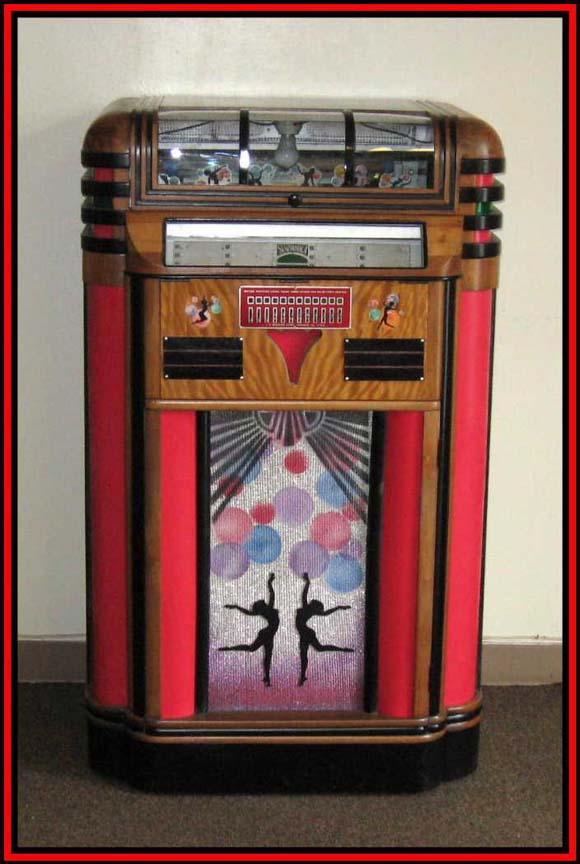 Homer Capehart Jukebox Entrepreneur and Right Wing Nut Historical Marker for the Capehart Cornfield Conference Click to Enlarge In politics, Capehart became the center-point for a GOP revolution in Indiana and the midwest, mainly by sponsoring a huge "Cornfield-Conference" on one of his farms in 1938. Capehart was first elected to the United States Senate in 1944, narrowly defeating Henry Schricker. When first elected to the Senate, Capehart supported efforts to compromise with the Japanese on terms of surrender. In the Summer of 1945 Capehart feltat that the war might have ended sooner if President Truman would have stated precisely what unconditional surrender meant for the Japanese. He was critical of the Truman administration and the military for their postwar policies in Germany, accusing Truman and General Dwight D. Eisenhower of a conspiracy to starve the remains of the German nation. In a strange twist, Capehart reacted to the Marshall Plan (to feed and rebuild all of Europe after WWII) as "state socialism." His Republican colleague, Senator Joseph McCarthy, of Wisconsin, translated that for the masses as a "massive and unrewarding boondoggle" that had turned the United States into "the patsy of the modern world." Although nowhere near as vulgar as "Tail Gunner Joe", Capehart remained a close colleague of McCarthy during the depths of the Mud-Slinging and Witch-Hunting of the late 1940s and early 1950s. President Truman was definitely not one of his admirers, especially won the question of removing wartime price controls. Capehart managed to get a bill through the newly Republican 87th Congress that would immediately remove controls, even though the economy was ill-poised to supply consumer goods. Congress even overrode Truman's veto. The result was a fairly massive inflation that eventually cost the Republicans the 1948 Pesidential election. After the war, The Model 7 Pla-Mor was manufactured. This combined the most deeply moulded plastics ever manufactured, and an unusual mechanism that stored the 78rpms vertically to the left of the turntable. By 1949 economic pressures reduced Packard to the manufacture of wallboxes only, and in 1950 Packard was declared bankrupt, selling its phonograph division to Wurlitzer. After Eisenhower, Capehart continued to fight with any administration in power, earning the enmity of Kennedy, Johnaon and Nixon. Acme Remanufactured JukeboxesWe knew nothing about the Acme Company until we received this letter from our reader Mike: "... I thought you might like a photo of a rare Acme Jukebox from the 1940’s. [This has an interesting origin] Since major makers stopped production during the war, parts subcontractors like Acme developed an aftermarket wooden box that could accommodate a wide variety of different jukebox mechanisms. In effect, they were able to make new jukeboxes out of spare parts and discarded mechanisms without using materials that were needed for the war effort. There was a great demand for jukeboxes at the time, especially in USO clubs all over the world Although several companies made aftermarket boxes, Acme was the largest and thus, "Acme" is a generic name for these machines. There is not a lot of information on either manufacturers and/or models that were made. The only folks that knew about these items were the jukebox vendors who leased and serviced them. Some information about these aftermarket machines may be found in old parts catalogs published for the Coin Operated Machines Association but it is quite limited. The boxes were a "One Size Fits All" design that would fit many early models like Wurlitzer and Seeburg from 10 to 20 play. The boxes ranged from very simple to extra fancy. I have seen them made from a one piece molded papier-mâché with wooden supports molded into them to a composition made from sawdust and glue. Others had cabinets stamped from metals that were not restricted by war priorities. Here are photos of a wooden box that is the fanciest Acme that I seen so far.