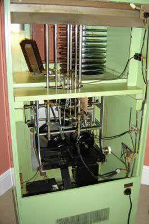 The "Mighty Wurlitzer" at Radio City Music Hall Click to Enlarge A combination of the Depression and Talking Pictures almost put Wurlitzer out of business. In 1928, Wurlitzer's shares sold at $119 a share. In 1933, the price was $10 a share and the company was $5 million in debt. At great risk, Wurlitzer gambled and bought the Simplex Manufacturing Company, the developers of record changing system called the Multi-Selector. This invention allowed people to push a button to select the record they wanted to hear. (Prior to this, coin operated phonographs only allowerd the customer to the next record in sequence.) Along with the Multi-Selector, Wurlitzer also acquired Homer C. Capehart, the Simplex owner. Eventually, Capehart became Wurlitzer's general manager and led Wurlitzer back to success. In 1933, before Capehart, Wurlitzer leased 300 jukeboxes. Even in the depression people could afford a nickel for a song -- if they were sufficiently entertained. Capehart's aggressive management style and a flair for the dramatic propelled Wurlitzer into a multi-million dollar company. In 1936, Wurlitzer leased 44,000 jukeboxes. As we have seen in the section on Jukebox Aesthetics, Wurlitzer was at the forefront of modern design in jukebox design. However, they were also at the forefront of business development. Capehart was also a leader in programming -- developing mechanisms for deciding which records would be hits, always seeking to maximize revenue.