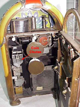 I have fantasies about people reading this page in 2050. If this should be the case, you are pobably quite amused with my antique style of HTML that was actually done in Notepad. Who know, you're probably reading this on some kind of chip that is embedded in your thumbnail, thinking that people in 2009 were such backward morons... If the page lasts that long, it must have something to say, so give us a little bit of credit. I just saw a show on TV yesterday that went into some detail about how the Apollo guidance system got people from the Earth to the Moon using only 73 KB of memory. (That's just a little bit less than the size of a message from Britney to Brandi about how cute Josh is.) It was even more primitive before there were computers... at least the electronic kind. Right now, I'm going to ask that you transport yourself [mentally] back to 1930. You're going to be required to forget that you know anything about computers at all. There are no microchips. If you are an engineer, all you can work with are levers, gears, switches, motors and the occasional light bulb. You have a technical base that includes things like cash registers, adding machines and the like, but all of those things are operated by folks with some form of training, and they perform one or two basic functions. You're going to be designing a multi-function machine that has to attract and be operable by the general public in a fairly harsh environment. You will have to take unscrupulous people and vandals as a given and mount strong defenses without scaring anyone away. Those who are not into mechanical things can probably skip this, but you ought to at least read through the following challenge. Specifically, a Jukebox has to perform the following functions: